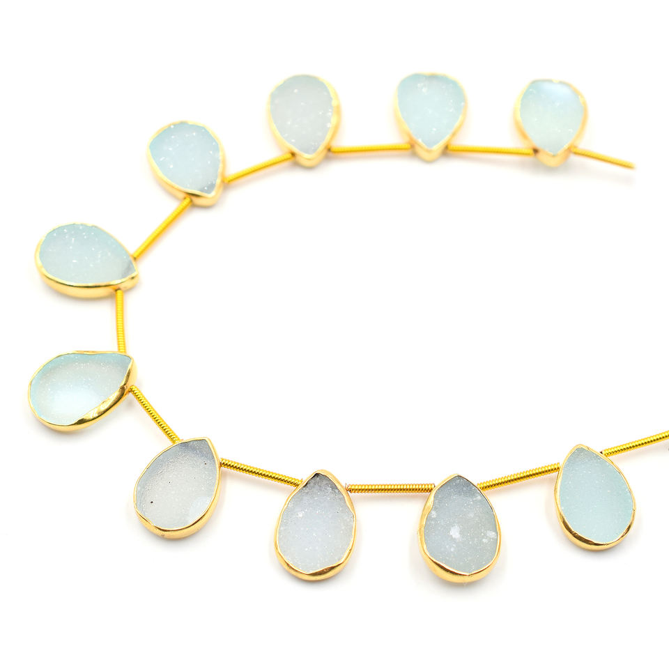 Product Name:Aqua Druzy Gold Plated Top Side Drilled 10 Beads Strand