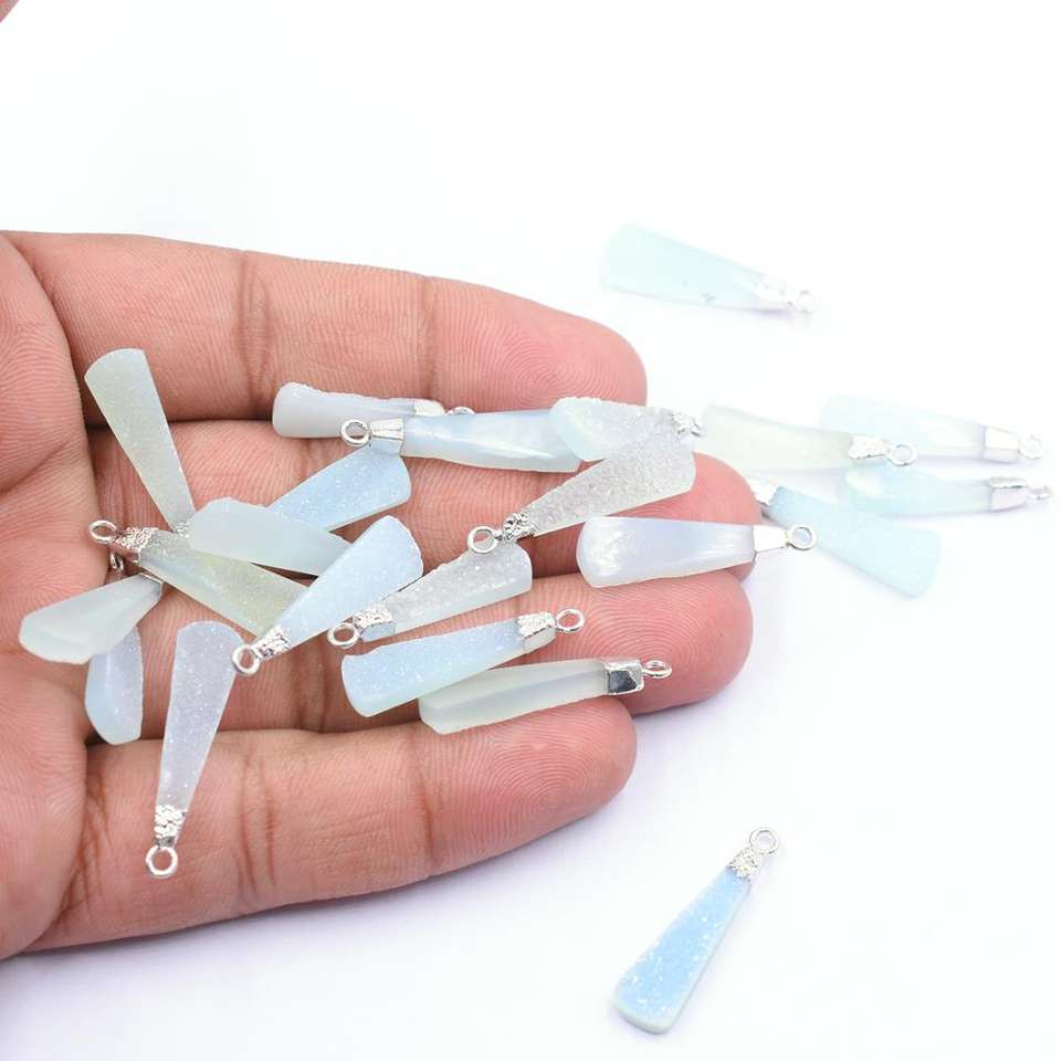 Product Name:Aqua Druzy Elongated Drop Shape Silver Plated Pendant