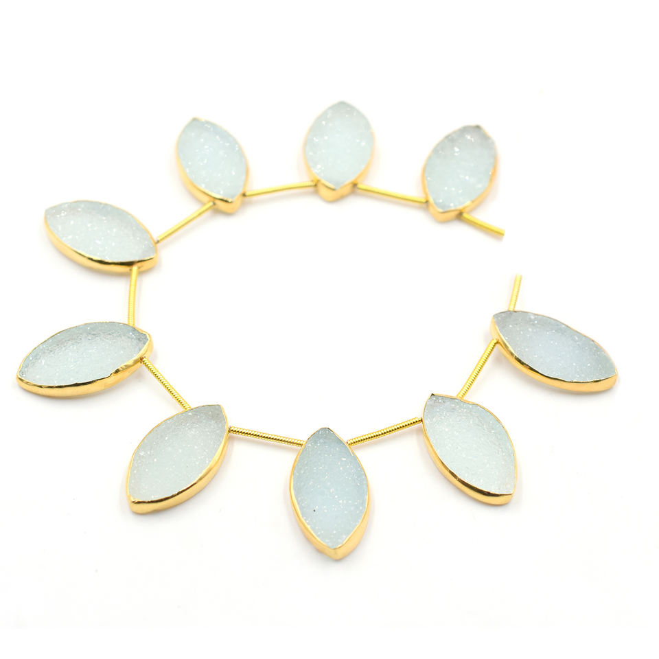 Product Name:Aqua Druzy Silver Bezel Gold Plated Top Side Drilled 9 Beads Strand