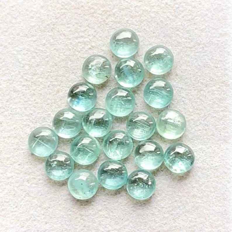 อควาไคยาไนต์ทรงกลม เจียระไนแบบคาโบชอง พลอยหลวม 15 ชิ้น/ล็อต อควาไคยาไนต์ธรรมชาติ ด้านหลังแบน สำหรับทำเครื่องประดับ