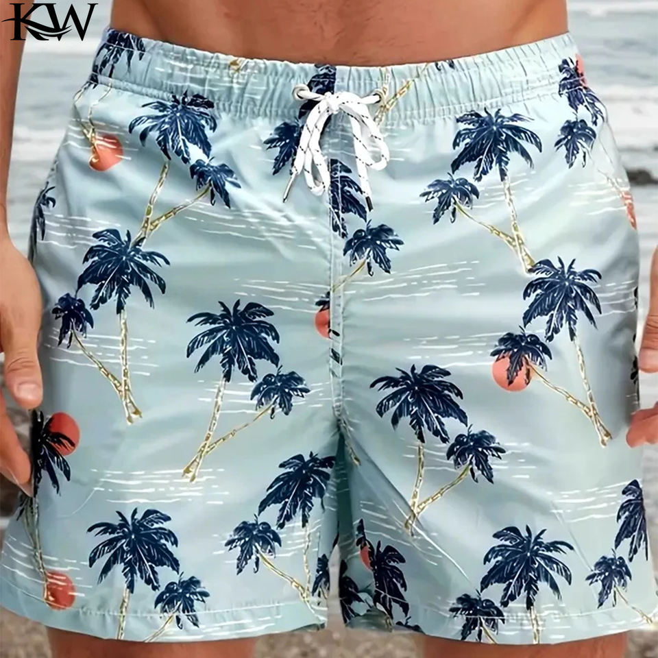 ชุดว่ายน้ำกางเกงขาสั้นผ้าแห้งเร็วแบบไอแลนด์เอวกลางระบายอากาศและกันน้ำมีโลโก้ด้านหน้า