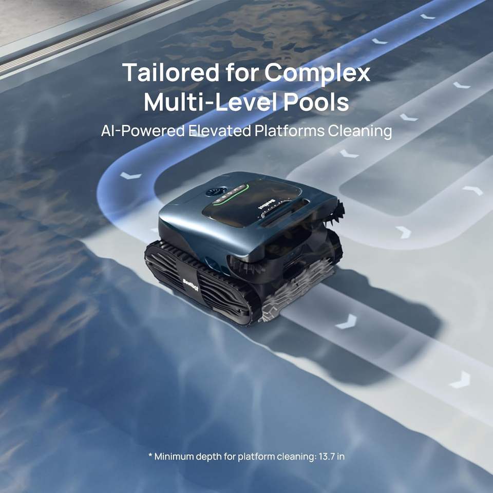 Aqua.Sens 2 Ultra เครื่องทำความสะอาดสระว่ายน้ำแบบไร้สายสำหรับสระว่ายน้ำที่ซับซ้อน, การสร้างแผนที่, กล้อง AI, ที่จอดบนพื้นผิว, ตัวกรอง, ควบคุมผ่านแอป/น้ำ