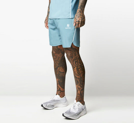 ชุดวอร์มคอกลมแขนสั้นสำหรับผู้ชายชุดวอร์มเล่นกีฬาสีคุณภาพสูงเสื้อยืดสองชิ้นแบบสั้นสำหรับฤดูร้อน