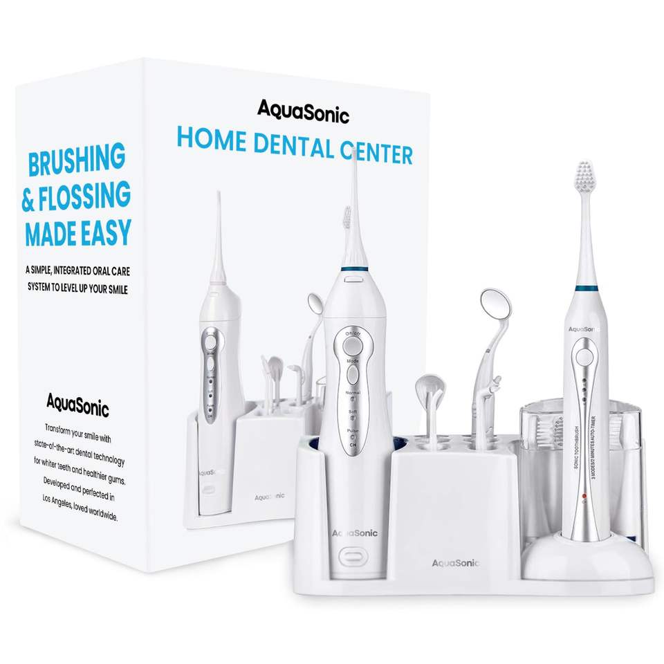 Aquasonic แปรงสีฟันไฟฟ้าแบบชาร์จไฟได้สำหรับใช้ในบ้านแปรงสีฟันไฟฟ้าและไหมขัดฟันแบบน้ำอัจฉริยะระบบดูแลช่องปากสำหรับครอบครัวอย่างสมบูรณ์