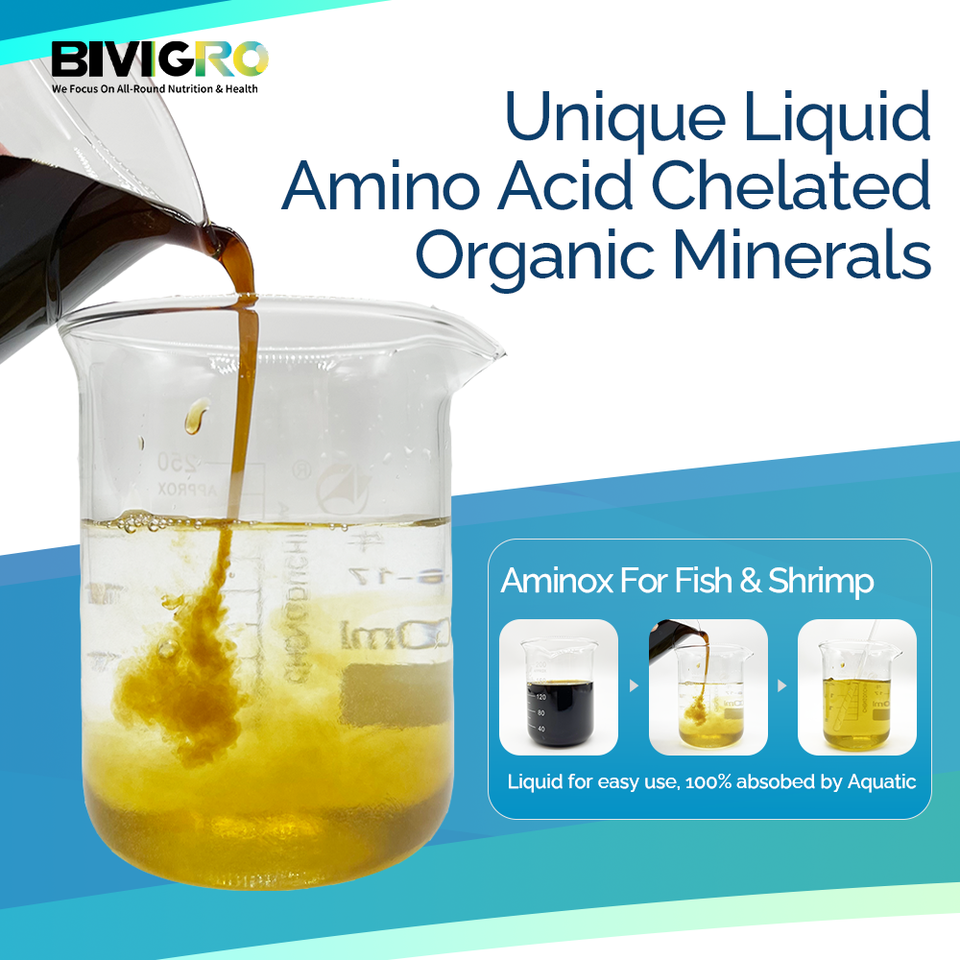 สารอาหารเสริมสำหรับการเพาะเลี้ยงสัตว์น้ำชนิดกรดอะมิโนเชลเลตและแร่ธาตุอินทรีย์ในรูปแบบของเหลว เพื่อช่วยในการเปลี่ยนเปลือกของกุ้งและส่งเสริมการเจริญเติบโตของปลา
