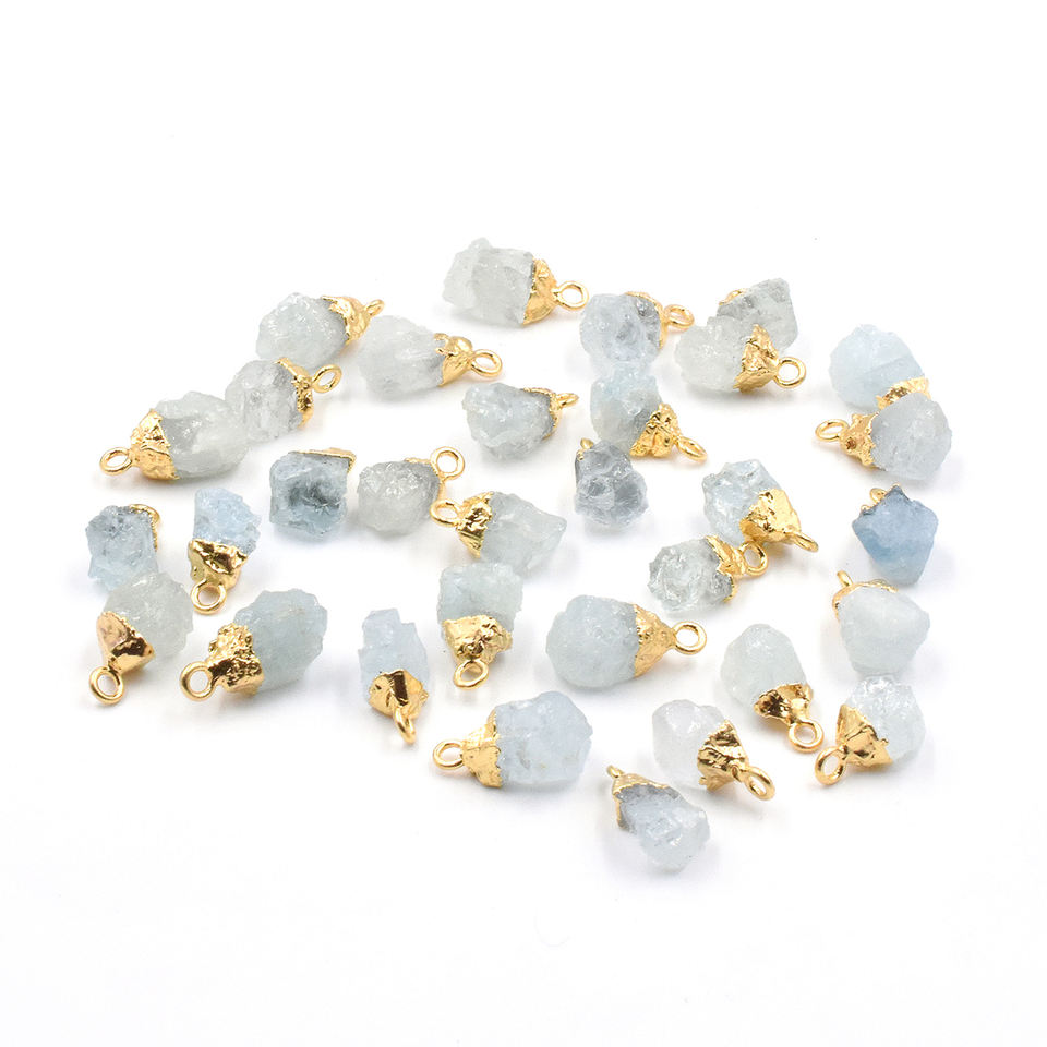 ชื่อสินค้า:อะความารีน ขนาด 11 ถึง 13 มม. พร้อมห่วงจี้ รูปทรงหยาบ ชุบทอง