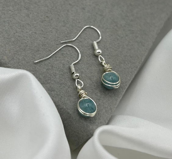 ต่างหูห้อยคริสตัลอความารีนสำหรับวันเกิดหินเดือนมีนาคม