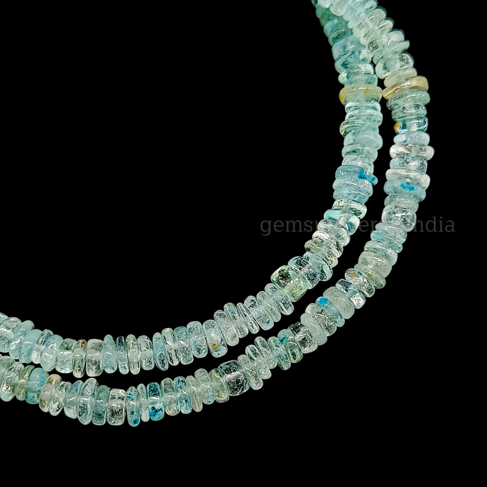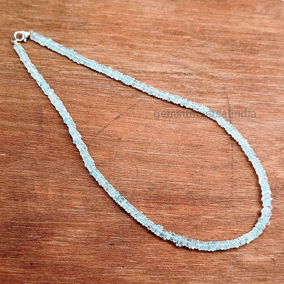 สร้อยคอพลอยสีฟ้าสีฟ้าเรียบ Heishi, สร้อยคอลูกปัดที่มีเข็มกลัดเงิน925, ลูกปัดยางเรียบสีอะความารีน
