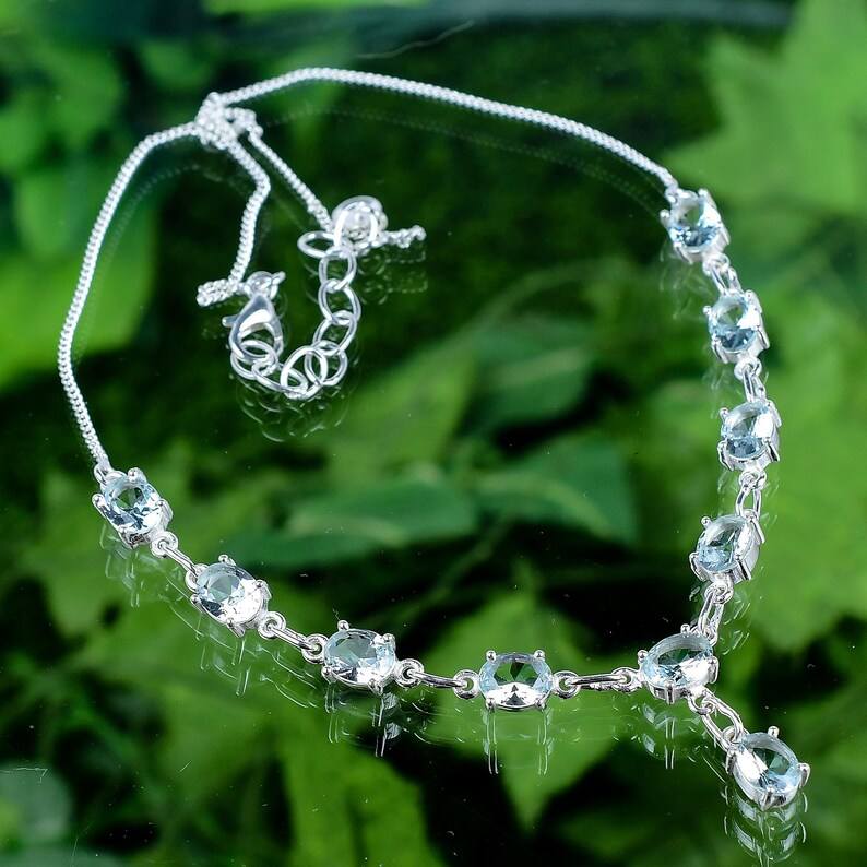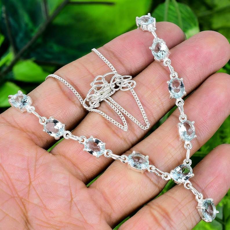สร้อยคออะความารีนทำด้วยมือ 925 เงินสเตอร์ลิงวินเทจชาติพันธุ์ลิงค์เชนจี้เครื่องประดับของขวัญสำหรับผู้หญิงอัญมณีชั้นดี