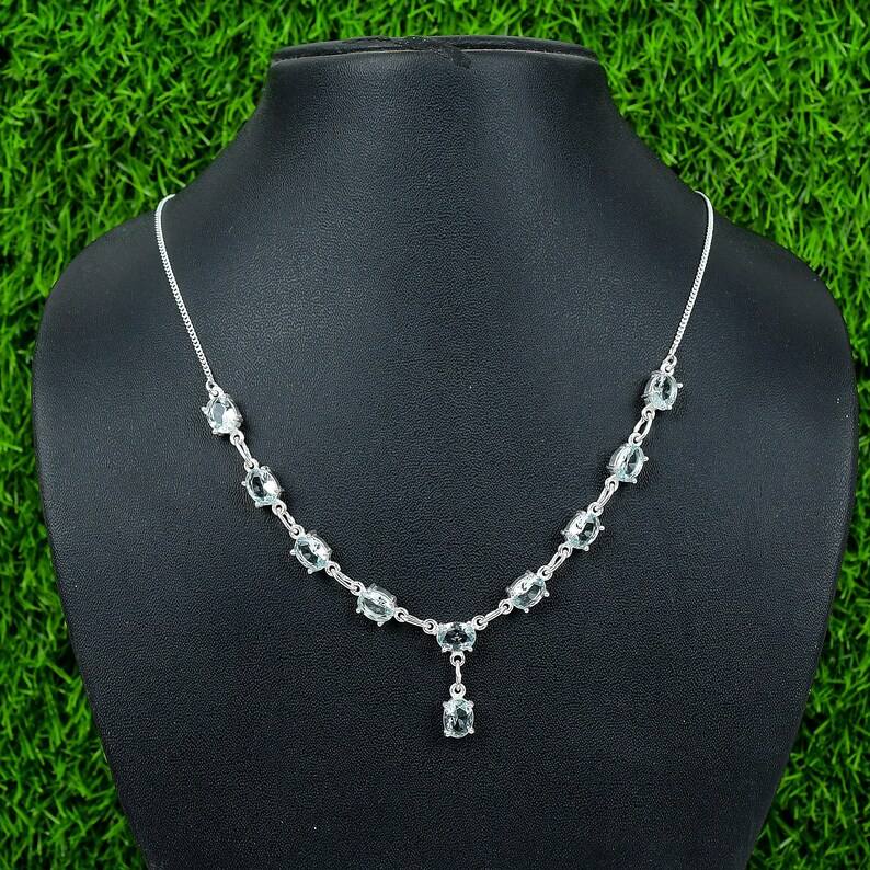 อัญมณี:สร้อยคออะความารีน จี้เงินแท้ 925 ทำมือ เครื่องประดับ