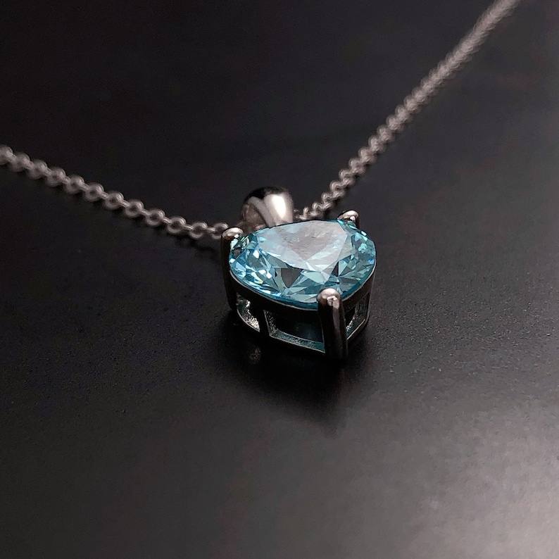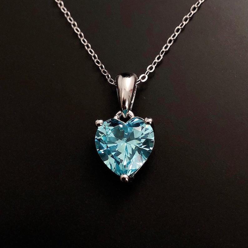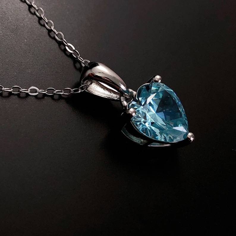 สร้อยคอเงินแท้ประดับพลอยอะความารีนรูปหัวใจ ของขวัญวันเกิด วันคริสต์มาส วันครบรอบ 10 ปี สำหรับผู้หญิง