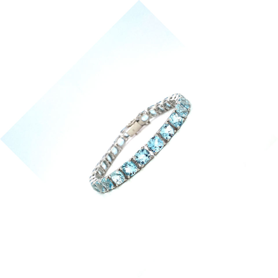 สร้อยข้อมือเทนนิสอความารีนสำหรับผู้หญิงของขวัญวันวาเลนไทน์ทำจากคริสตัลสีฟ้าน้ำทะเลสร้อยข้อมือแฮนด์เมดสำหรับผู้หญิง