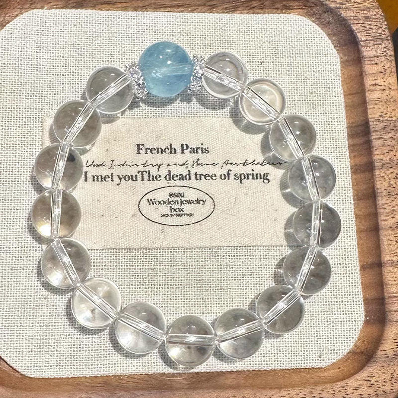 Inlay เทคโนโลยี:สร้อยข้อมือคริสตัลพลอยสีฟ้า8มม. สร้อยข้อมือคริสตัล10มม.