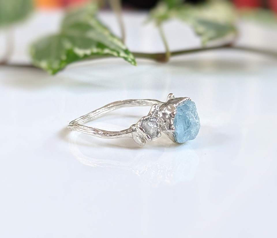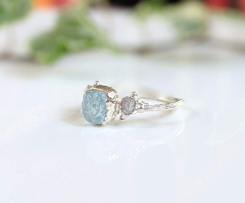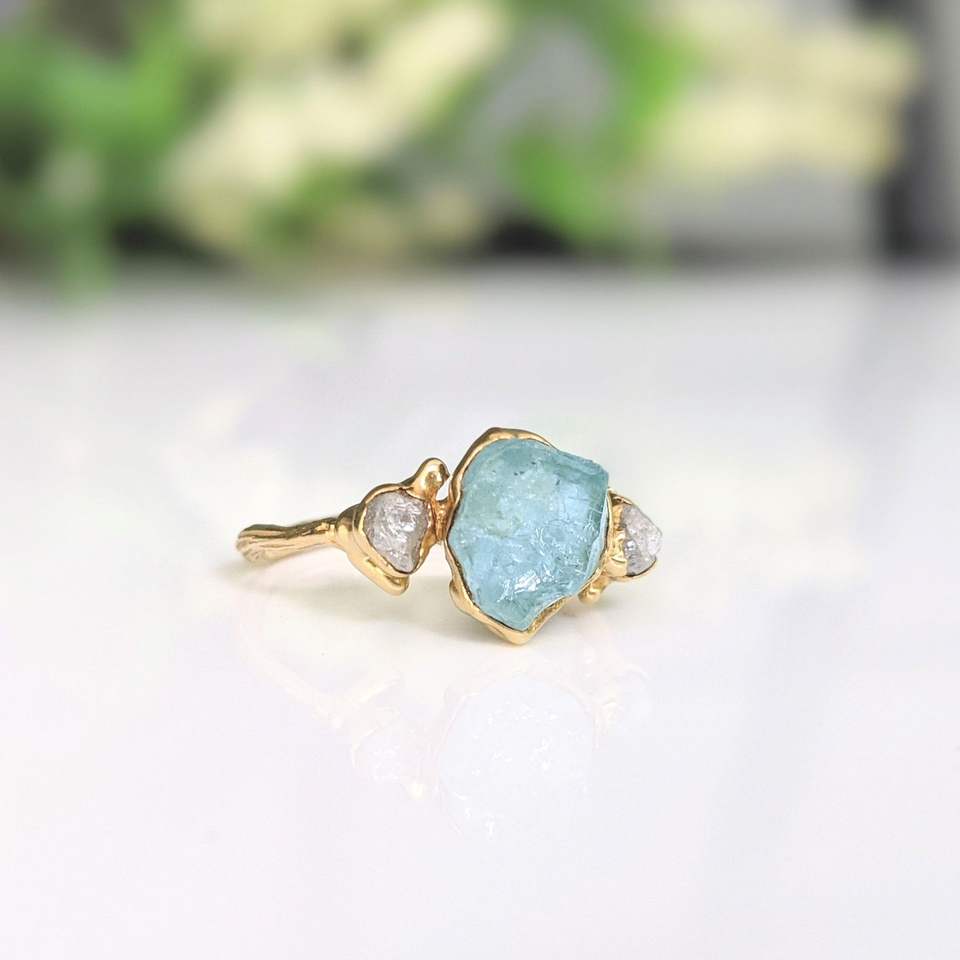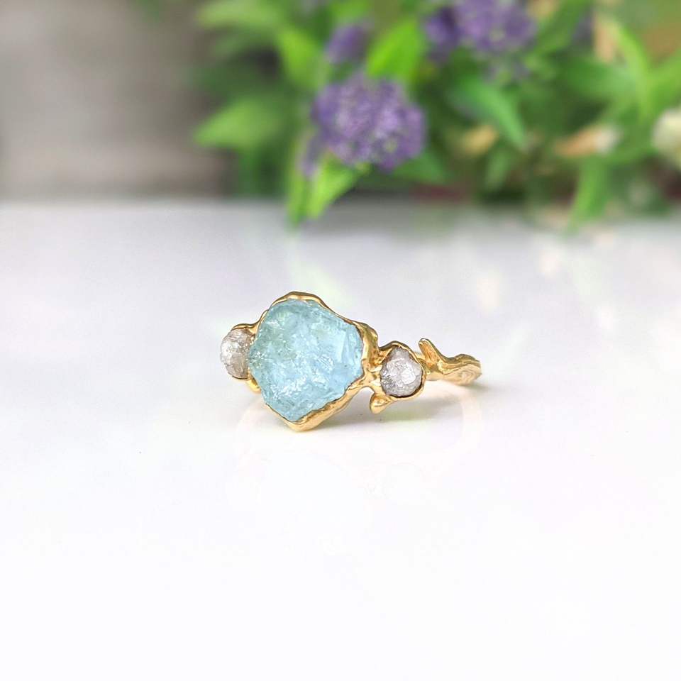 แหวนชุบทองหยาบสีอความารีนแหวนพลอยชุบโลหะด้วยไฟฟ้าอัญมณีแหวนมินิมอลธรรมชาติ