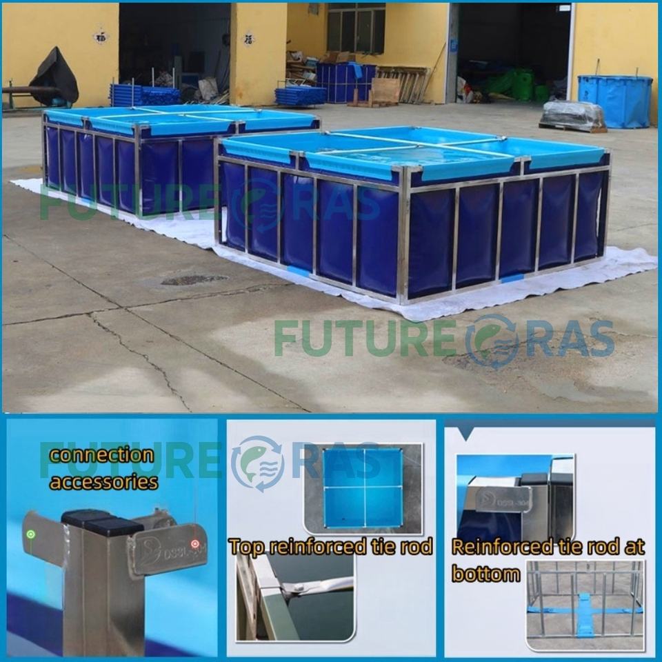 ระบบเพาะเลี้ยงสัตว์น้ำแบบอควาโปนิกส์ บ่อเพาะพันธุ์ปลาทรงสี่เหลี่ยม ระบบปลูกพืชไร้ดินแบบไฮโดรโปนิกส์ บ่อเลี้ยงปลาทรงสี่เหลี่ยมผืนผ้าพร้อมโครงเหล็กเสริม