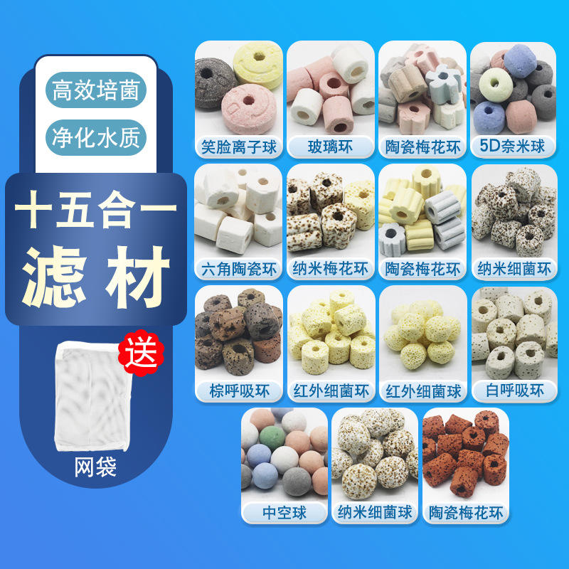 วัสดุกรองน้ำสำหรับตู้ปลาและบ่อปลา คาร์บอนกัมมันต์ วงแหวนเซรามิก ลูกควอตซ์ หินภูเขาไฟ- ที่พักแบคทีเรีย อุปกรณ์เสริม