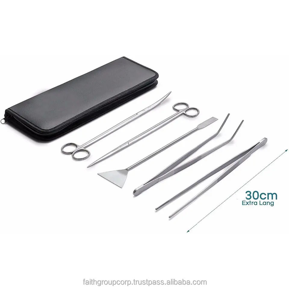 ชุดเครื่องมือสำหรับตู้ปลา,ชุดเครื่องมือทำความสะอาดตู้สัตว์น้ำสแตนเลส12นิ้ว5ชิ้น