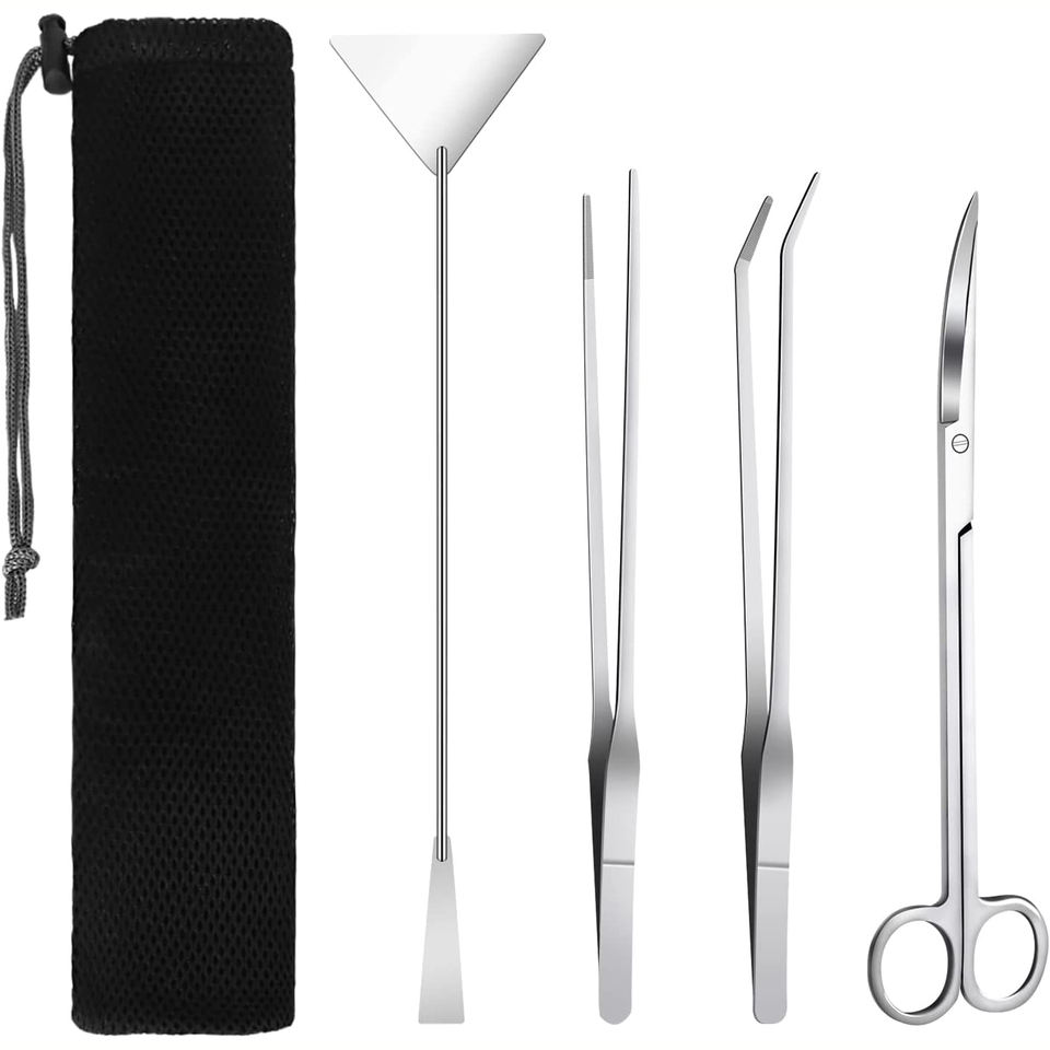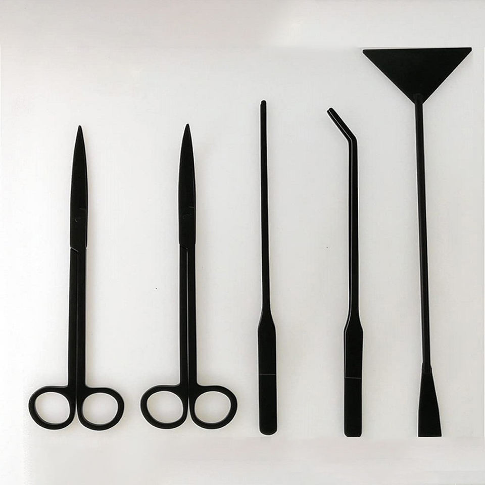 ชุดเครื่องมือตู้ปลา 5 in 1 สีดําสแตนเลสสตีลแหนบกรรไกรไม้พายมัลติฟังก์ชั่ตู้ปลาถังชุดเครื่องมือ