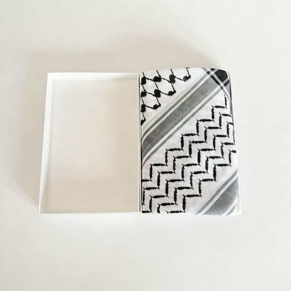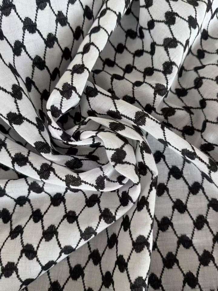 ผ้าคลุมศีรษะแบบเชมากสำหรับผู้ชายมุสลิมชาวอาหรับ ลายสก็อตแบบพื้นเมือง พร้อมปักโลโก้ตามสั่ง ทำจากผ้าโพลีเอสเตอร์ตาข่าย ขนาด 140 x 140 ซม.