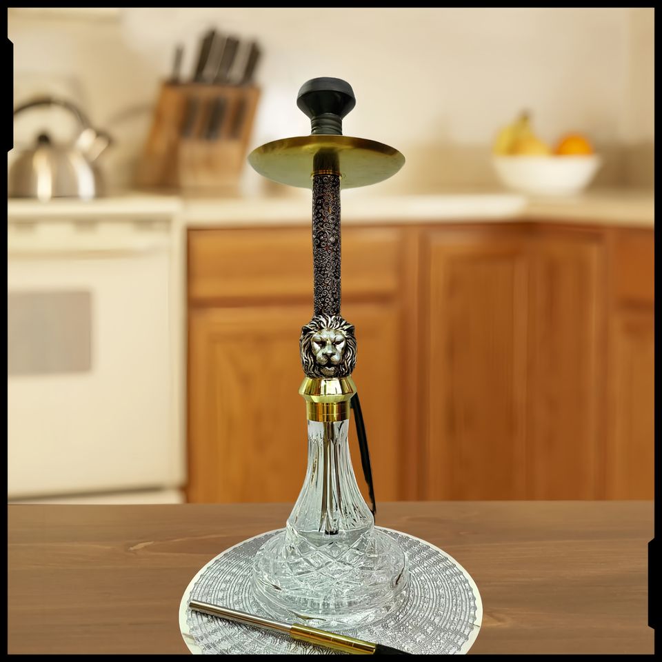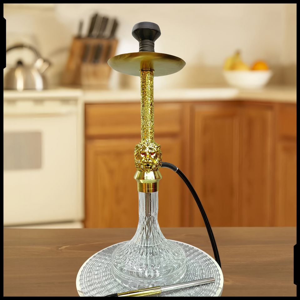 Arab Shisha, Gold Embossed Double-sided lion Head, 65 cm Large Single-tube High-grade Aluminum Alloy Shisha
