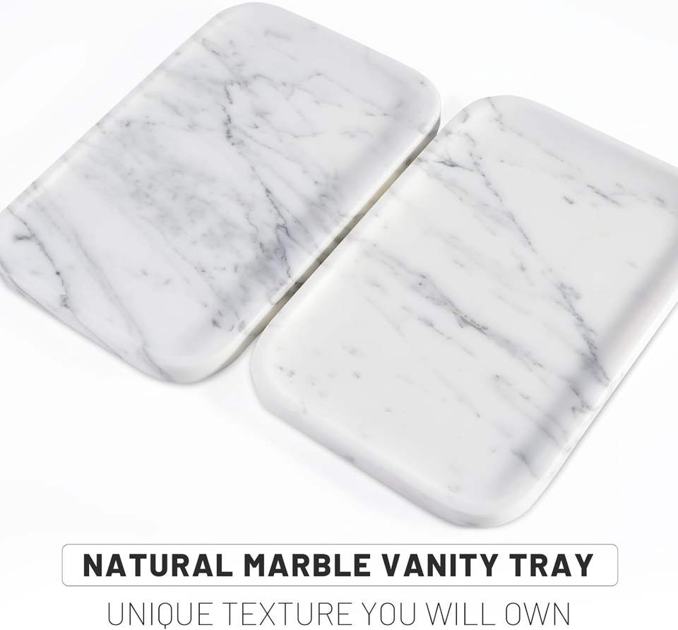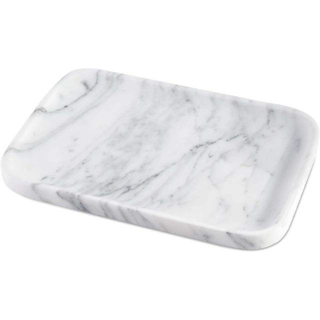 ถาดจัดระเบียบเครื่องประดับและอุปกรณ์บนโต๊ะอาหารแบบชั้นเดียว ทำจากเซรามิก Arabescato สำหรับวางบนโต๊ะเครื่องแป้ง ห้องน้ำ หรือเคาน์เตอร์
