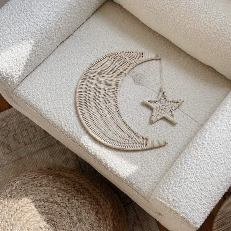 ชื่อผลิตภัณฑ์:ตกแต่งผนังหวายรูปพระจันทร์พร้อมดาวแขวน