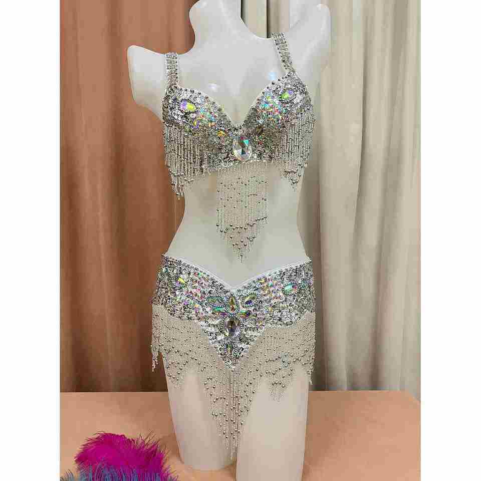 ชุดเต้นระบำหน้าท้องแบบอาหรับพร้อมบราเสริมฟองน้ำประดับลูกปัด คุณภาพสูง ใช้ได้หลากหลายสำหรับงานเทศกาลและปาร์ตี้