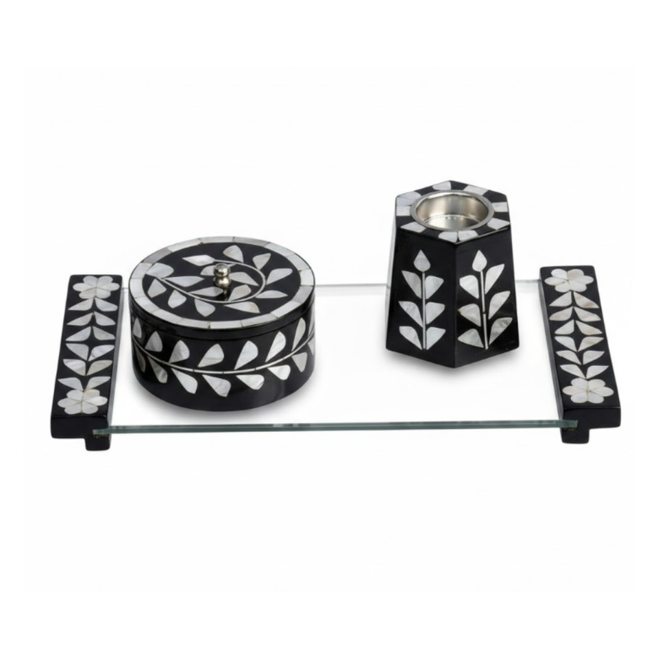 กล่องใส่บาคฮูร์อาหรับ & กระถางธูปมุก & ถาด