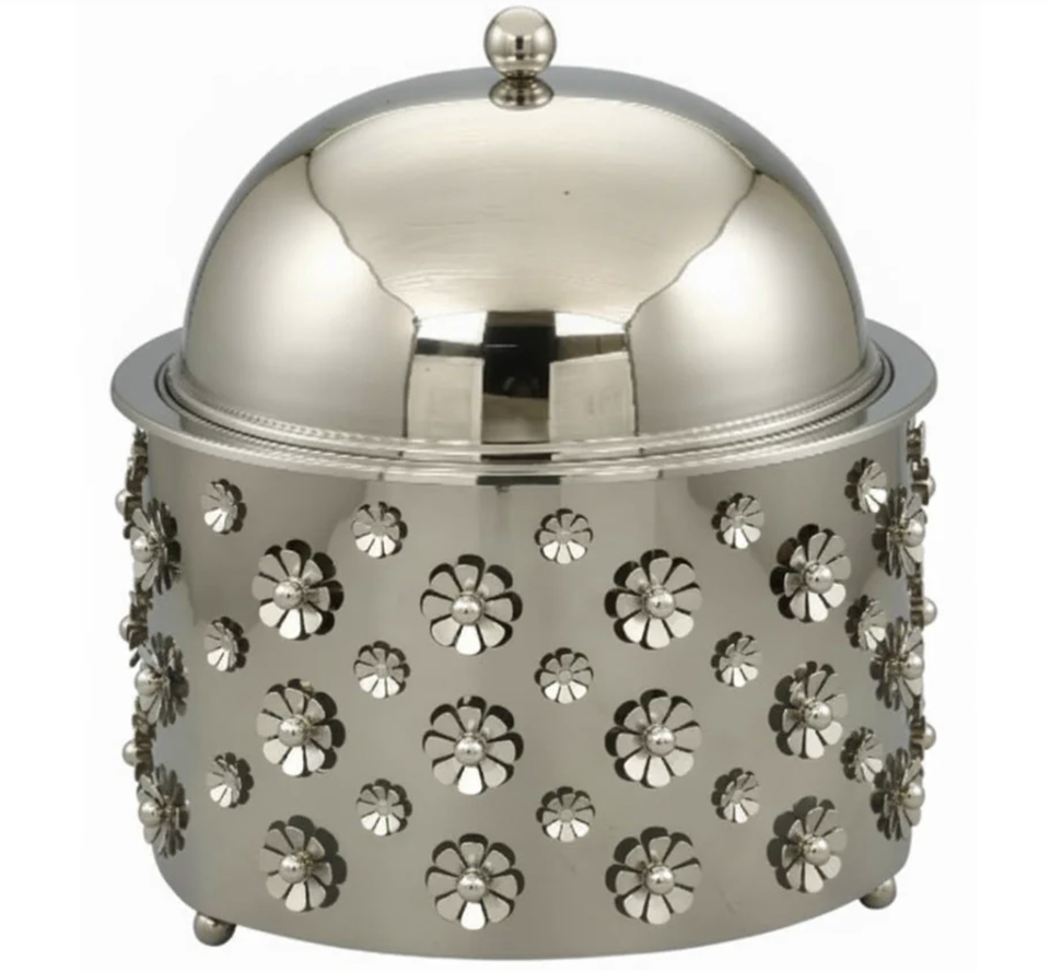 หม้อตุ๋นสเตนเลสสตีลรักษ์โลก ดีไซน์ลายดอกไม้ เงางาม ใช้ได้กับเตาแก๊สและเตาแม่เหล็กไฟฟ้า พร้อมฝาปิด สำหรับบุฟเฟ่ต์