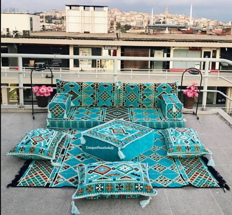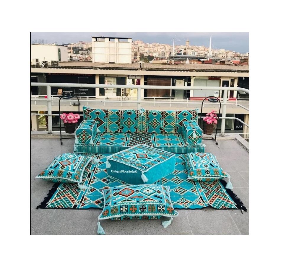 โซฟาพื้นสไตล์อาหรับชุดเต็ม-190ซม./6ฟุต/75นิ้ว-1ชุด10ชิ้น-ครอบคลุม + ฟองน้ำ