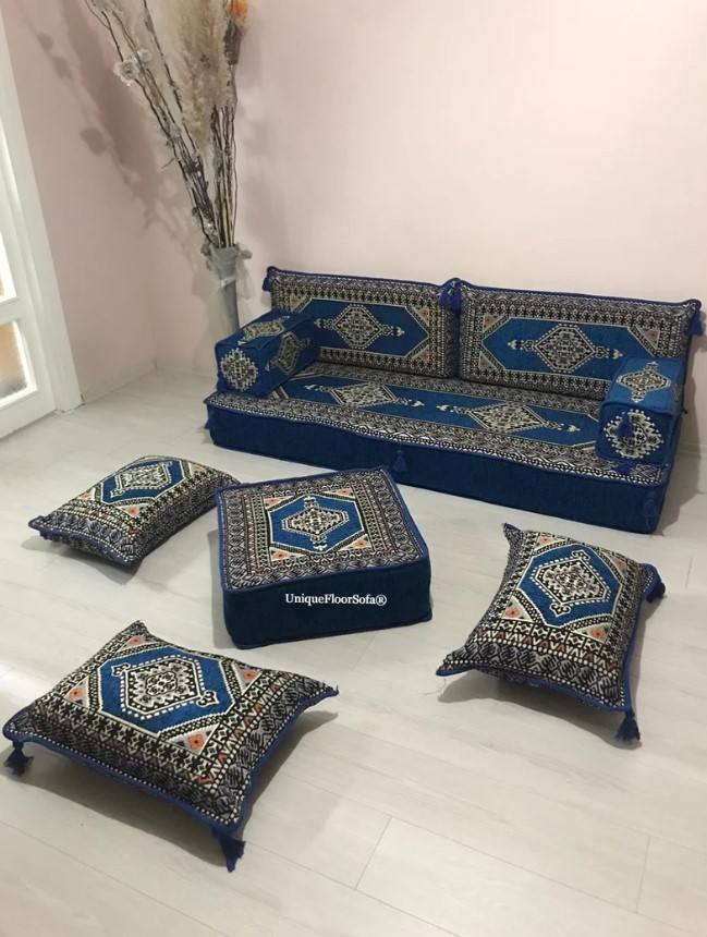 โซฟาพื้นสไตล์อาหรับชุดเต็ม-190ซม./6ฟุต/75นิ้ว-1ชุด11ชิ้น-ครอบคลุม + ฟองน้ำ