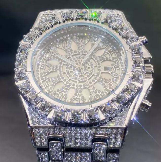 นาฬิกาผู้ชายสไตล์ฮิปฮอปไอซ์เอาท์สุดหรูสไตล์อาหรับเงินสเตอร์ลิงประดับเพชรเทียม