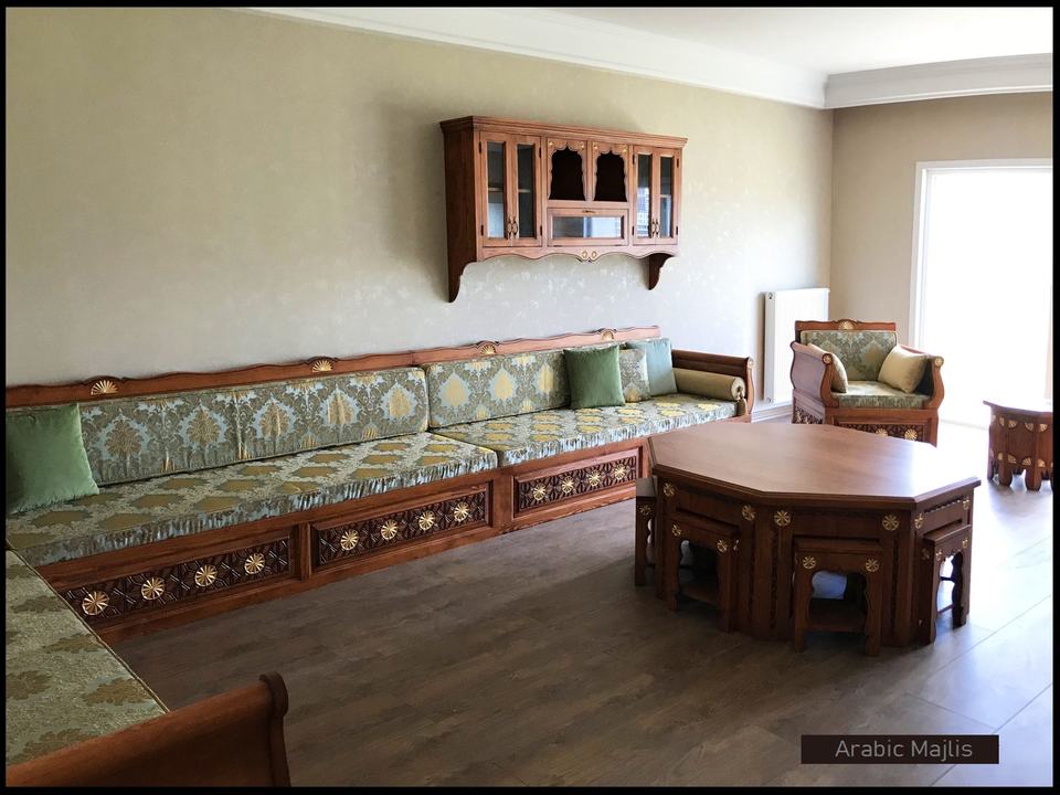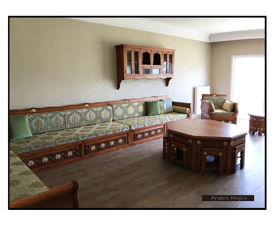 การออกแบบตกแต่งภายในแบบอาหรับมาจลิส ดีไซน์คลาสสิกสมัยใหม่ ชุดห้องนั่งเล่นหรูหรา ที่นั่งเข้ามุมสุดหรู ดีไซน์ประหยัดพื้นที่