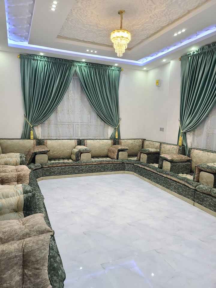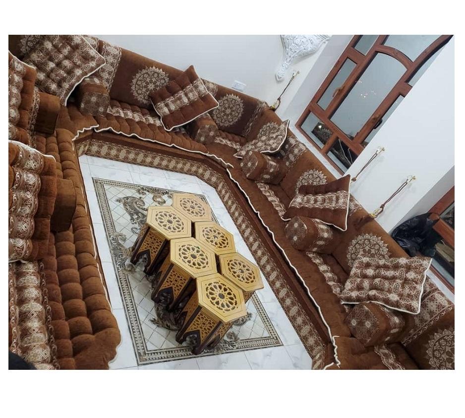 โซฟาสไตล์มาจลิสแบบอาหรับ ดีไซน์คลาสสิก ชุดห้องนั่งเล่นหรูหรา ที่นั่งเข้ามุมสุดหรู ดีไซน์ประหยัดพื้นที่