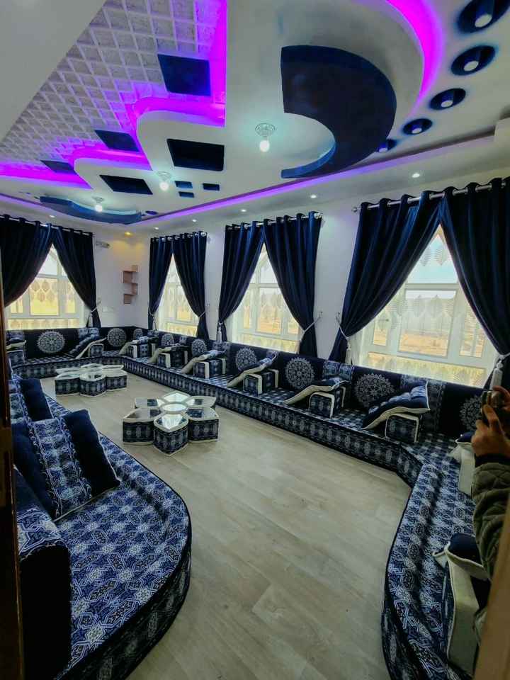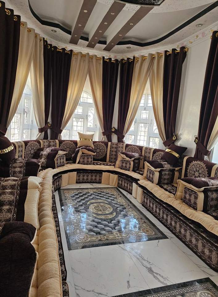 โซฟาสไตล์มาจลิสแบบอาหรับ ดีไซน์คลาสสิก ชุดห้องนั่งเล่นหรูหรา ที่นั่งเข้ามุมสุดหรู ดีไซน์ประหยัดพื้นที่