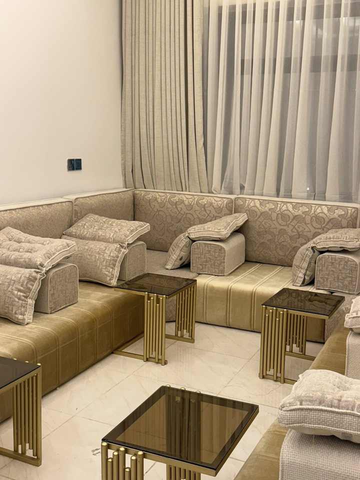 โซฟาสไตล์มาจลิสแบบอาหรับ ดีไซน์คลาสสิก ชุดห้องนั่งเล่นหรูหรา ที่นั่งเข้ามุมสุดหรู ดีไซน์ประหยัดพื้นที่