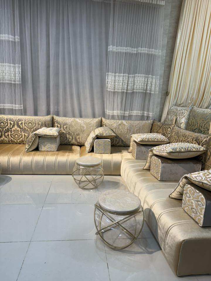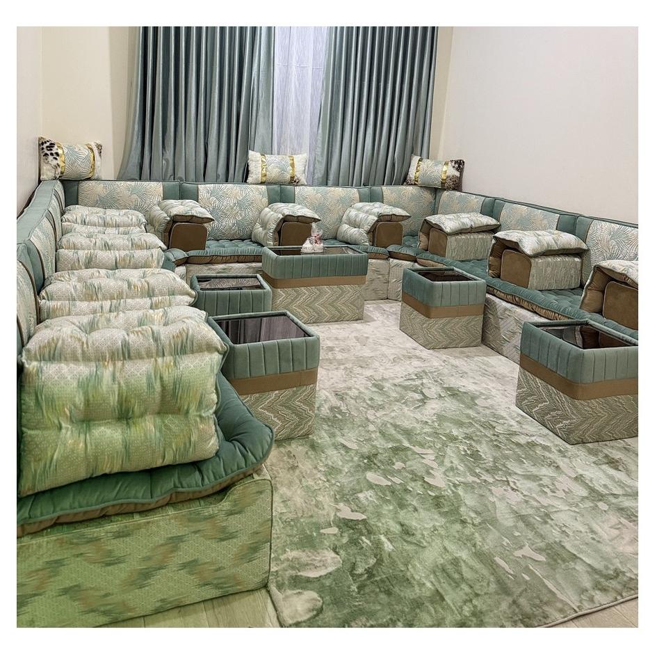 โซฟาสไตล์มาจลิสแบบอาหรับ ดีไซน์คลาสสิก ชุดห้องนั่งเล่นหรูหรา ที่นั่งเข้ามุมสุดหรู ดีไซน์ประหยัดพื้นที่