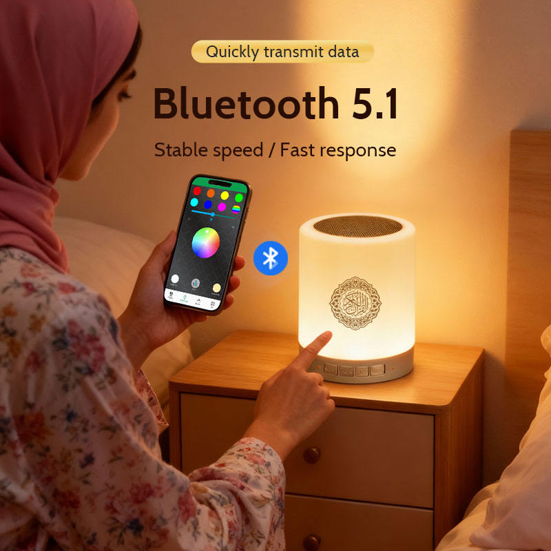 ลำโพงอัลกุรอานภาษาอาหรับ SQ112 ควบคุมด้วยระบบสัมผัสและแอปพลิเคชัน สำหรับโคมไฟกลางคืน LED เล่นเพลง MP3 ของขวัญอิสลามสำหรับเทศกาลอีดและรอมฎอน