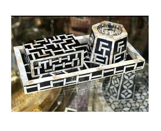 ชุดกล่องถาดไม้ฝังมุกสำหรับใส่เครื่องหอมมุบคาร์ บาคูร์ กลิ่นกุหลาบ ของขวัญรอมฎอนแบบอาหรับ ปรับแต่งได้ กลิ่นแบบตะวันออกกลาง