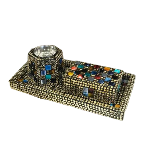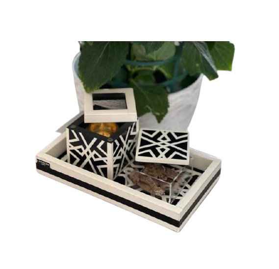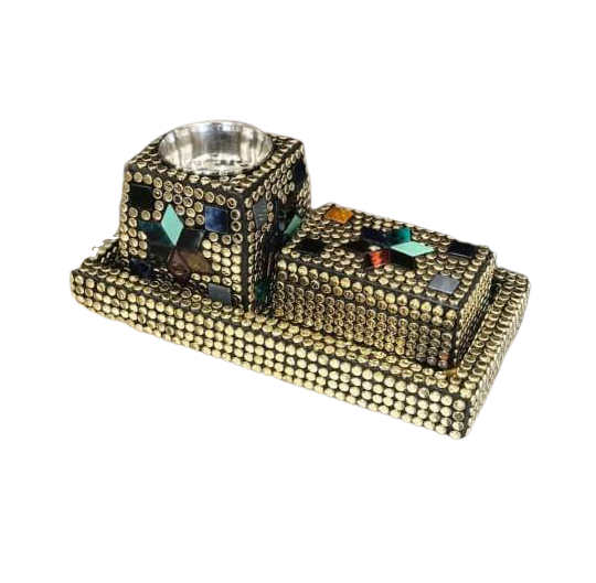Arabic Ramadan Gift Set Wood Mother Pearl Inlay Mubkhar Bakhoor Burner Tray Oud Burner Middle East Censer Rose Scented Religious