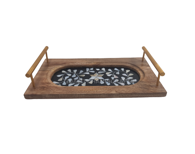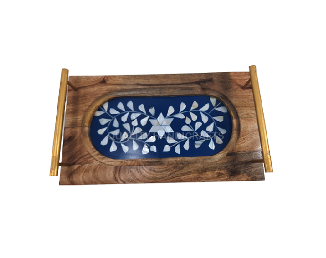ถาดเสิร์ฟไม้กระถินเทศฝังมุกแบบอาหรับสำหรับของขวัญรอมฎอนและอีด สามารถปรับแต่งขนาดและสีได้ คุณภาพดีสำหรับตกแต่ง