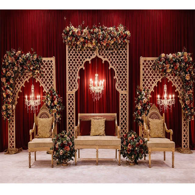 ฉากงานแต่งงานแบบอาหรับ แผงโลหะตัดด้วยเลเซอร์ ฉากหลังงานเมห์นดีแบบมุสลิม กรอบฉากทันสมัย คลาสสิก พกพาสะดวก แคลิฟอร์เนีย สหรัฐอเมริกา