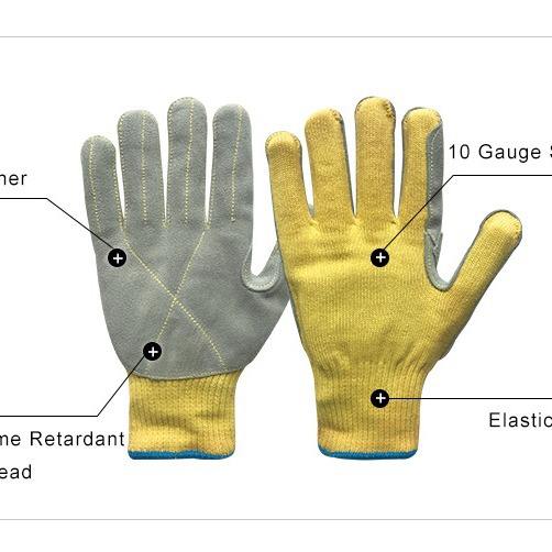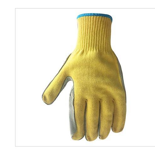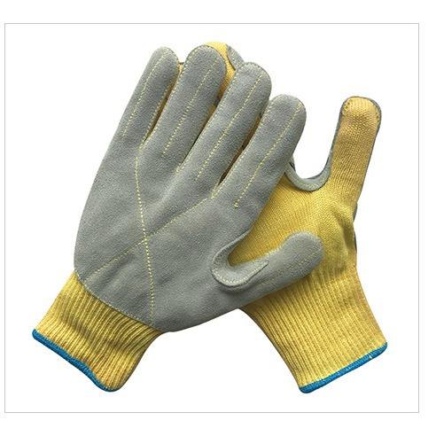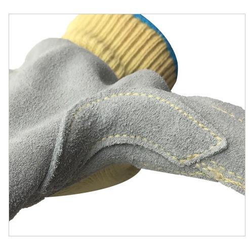 ถุงมือหนังวัวเย็บด้วยอะรามิด เคฟลาร์ ป้องกันการบาดระดับ 5 สำหรับงานเชื่อมในโรงงาน