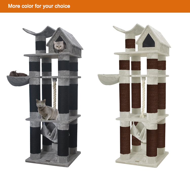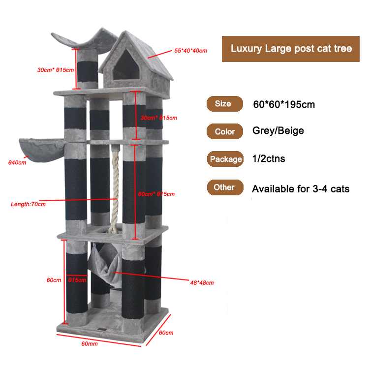 Arbre Chat Grand Xxl Boisสีดําขนาดใหญ่สําหรับแมวแมวเตียงของเล่นฯลฯเฟอร์นิเจอร์Catscer Condeคอนโดทาวเวอร์พร้อมเปลญวน