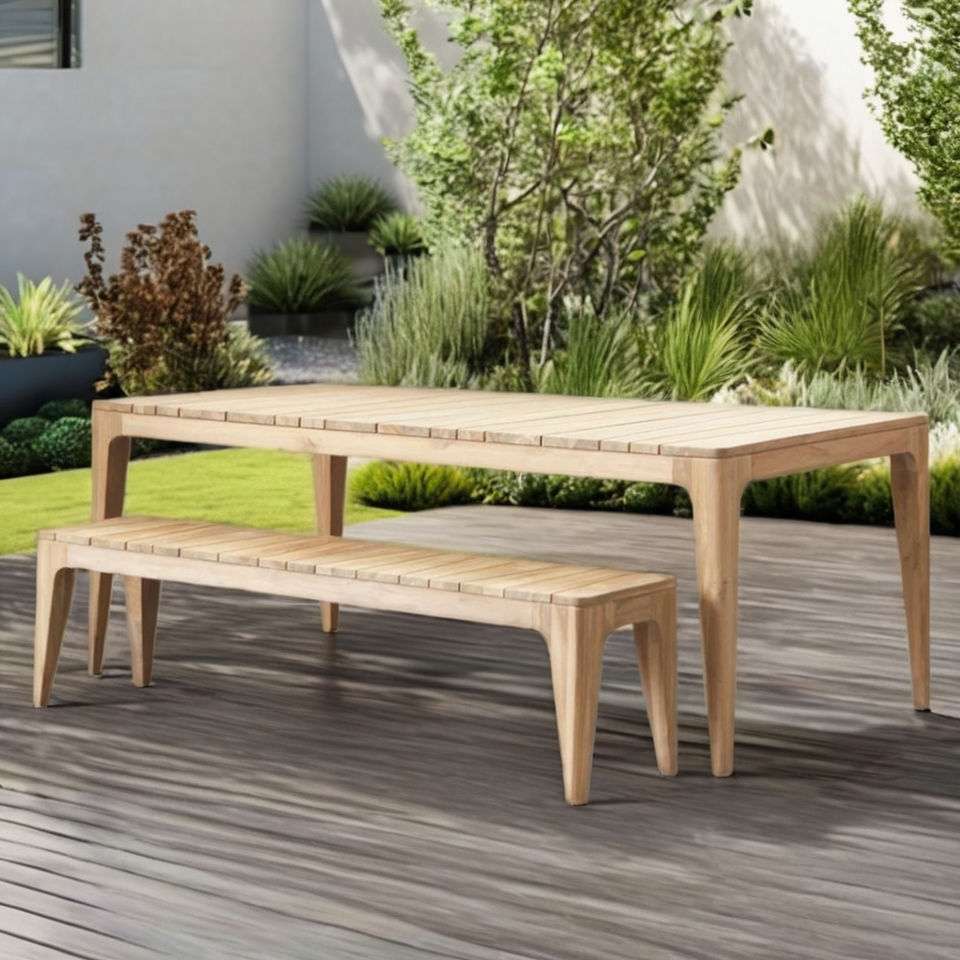 ชุดโต๊ะรับประทานอาหารทำจากไม้สักทรงโค้งพร้อมขาเรียวทนทานเฟอร์นิเจอร์สระน้ำในสวน