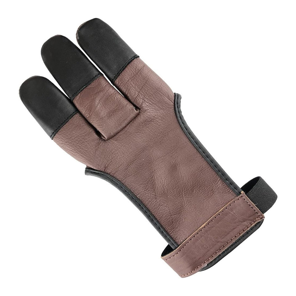 นักธนูสามนิ้วมือขวาถุงมือยิงธนูหนังสีน้ำตาลหนังวัวแท้หนาระบายอากาศได้ดีสำหรับกลางแจ้ง