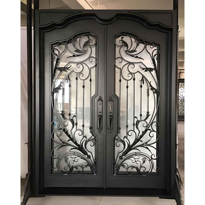 ประตูเหล็กโค้งที่มีการก่อสร้างโลหะที่แข็งแกร่งและการออกแบบประตูหลักที่กำหนดเองสำหรับพื้นที่ทางเข้าสวนและบ้าน