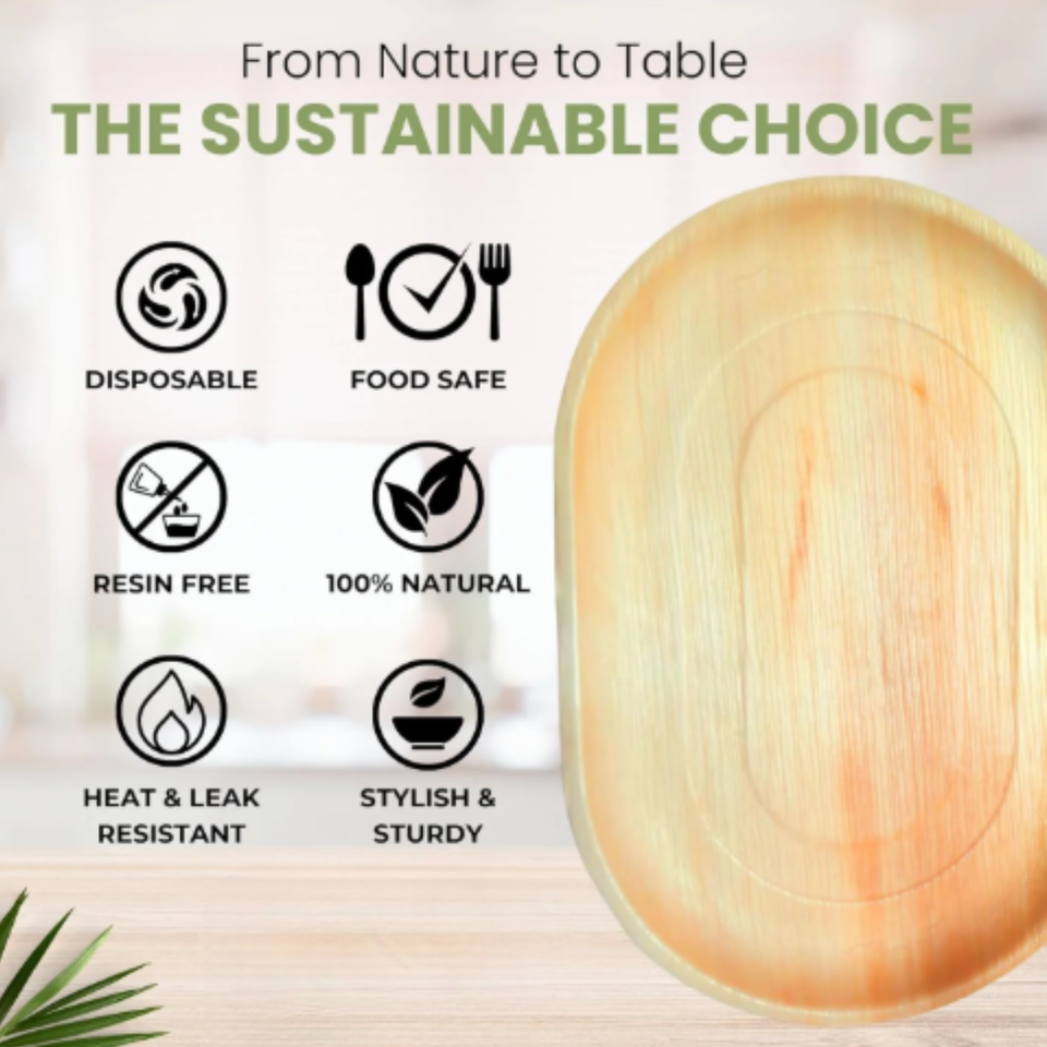 Areca ถาดเสิร์ฟอาหารแบบใช้แล้วทิ้งทรงรีสำหรับจัดงานแต่งงานวันเกิดเดินทางซูเปอร์มาร์เก็ตตั้งแคมป์ทางธุรกิจอีคอมเมิร์ซ