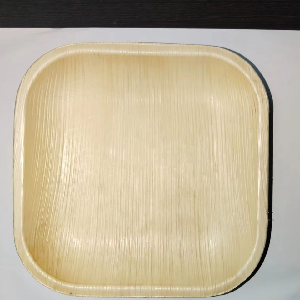 แผ่นใบปาล์ม Areca แบบใช้แล้วทิ้งขนาด10นิ้วทรงกลมสี่เหลี่ยมจตุรัสสำหรับงานปาร์ตี้งานแต่งงาน
