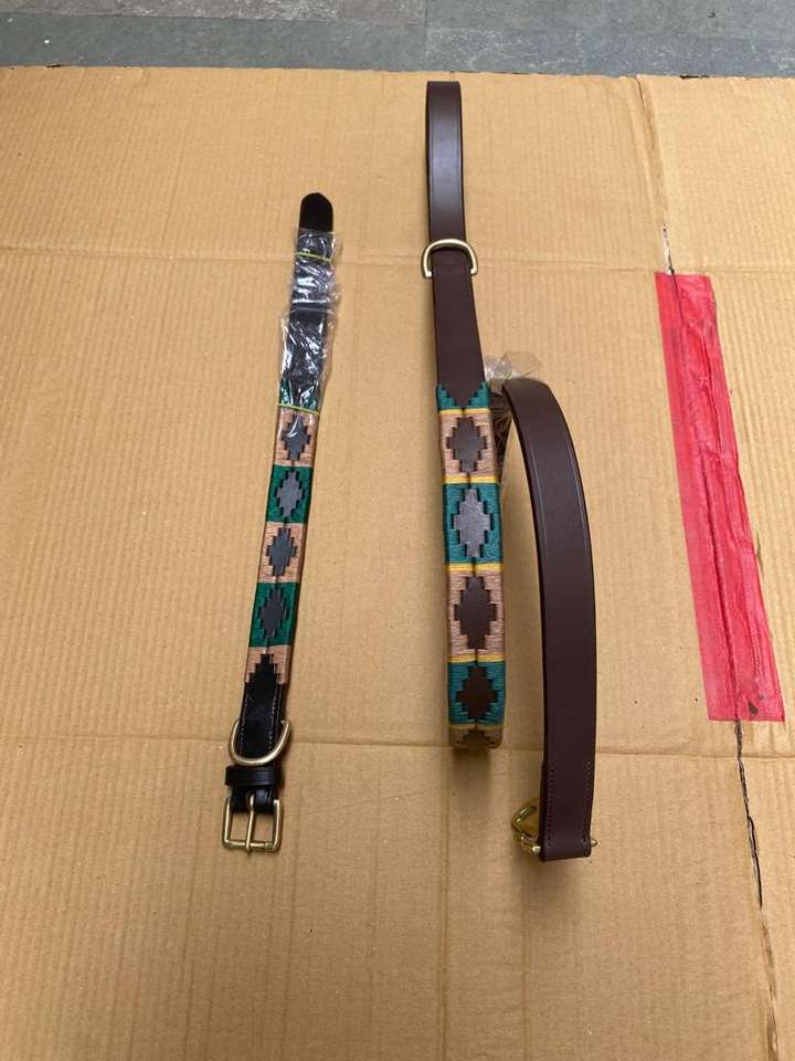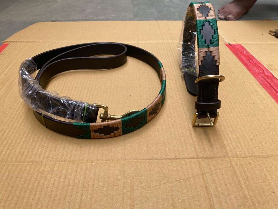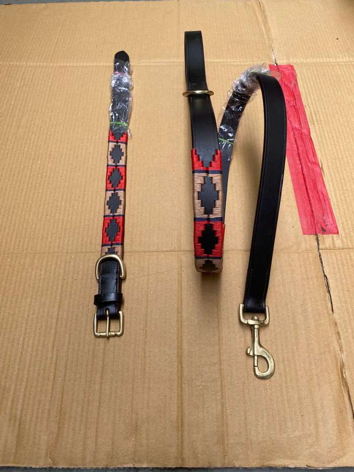 ปลอกคอและสายจูงสุนัขโปโลอาร์เจนตินา ทำด้วยมือจากหนัง ตกแต่งด้วยลูกไม้ พร้อมคุณสมบัติปลดเร็ว ลายสัตว์